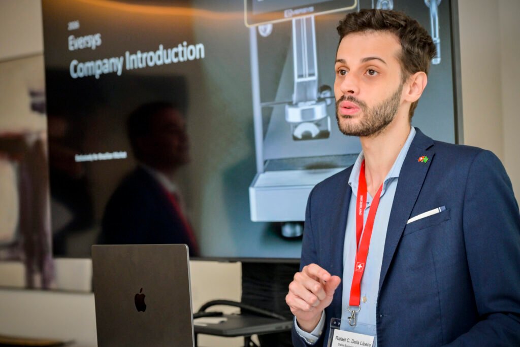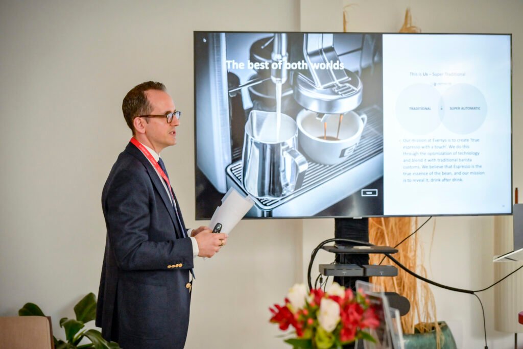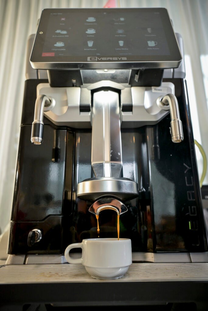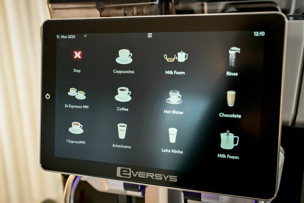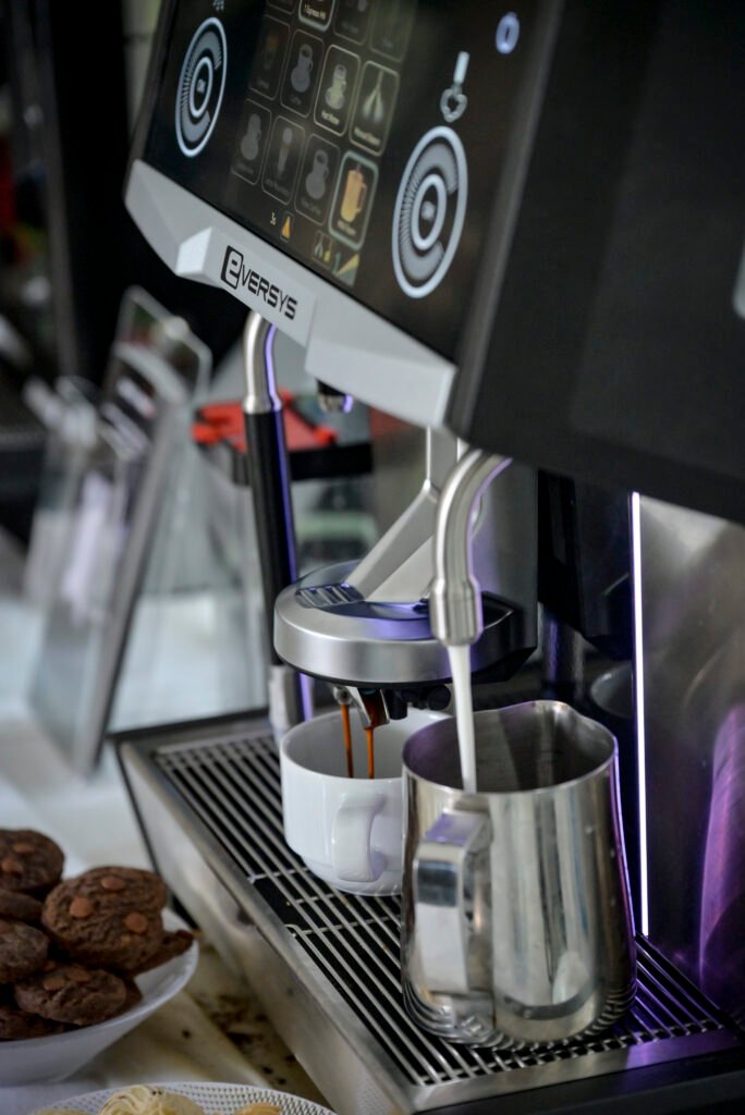 Durante o encontro, os convidados puderam conhecer mais sobre a proposta da Eversys, uma tecnologia que combina engenharia de precisão com a experiência sensorial de um café preparado por baristas. A apresentação conduzida por Julian, representante da marca no Brasil, destacou a facilidade de operação das máquinas, evidenciando como é possível alcançar um padrão elevado de qualidade com simplicidade e consistência.